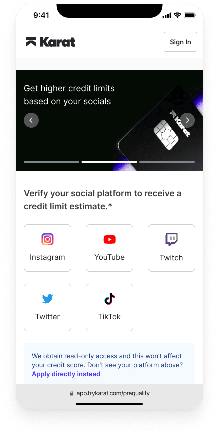As part of our Series B announcement, we launched a pre-qualification flow that informed the applicant in just one-click whether they qualified for the Karat card. This resulted in a 200% increase in qualified leads.